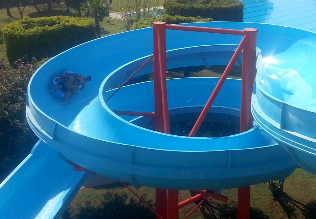 Sus giros amplios y entrelazados dominan su diseño que hace que los usuarios lleguen hasta lo alto de la orilla del tobogán en cada curva, para seguir bajando y encontrarse con un acelerador que nos hace caer a 45° de pendiente para salir nuevamente disparados a la siguiente curva para terminar salpicando agua en la piscina o canal de frenado diseñado para desplazarnos poco a poco en desaceleración hasta frenar por completo.